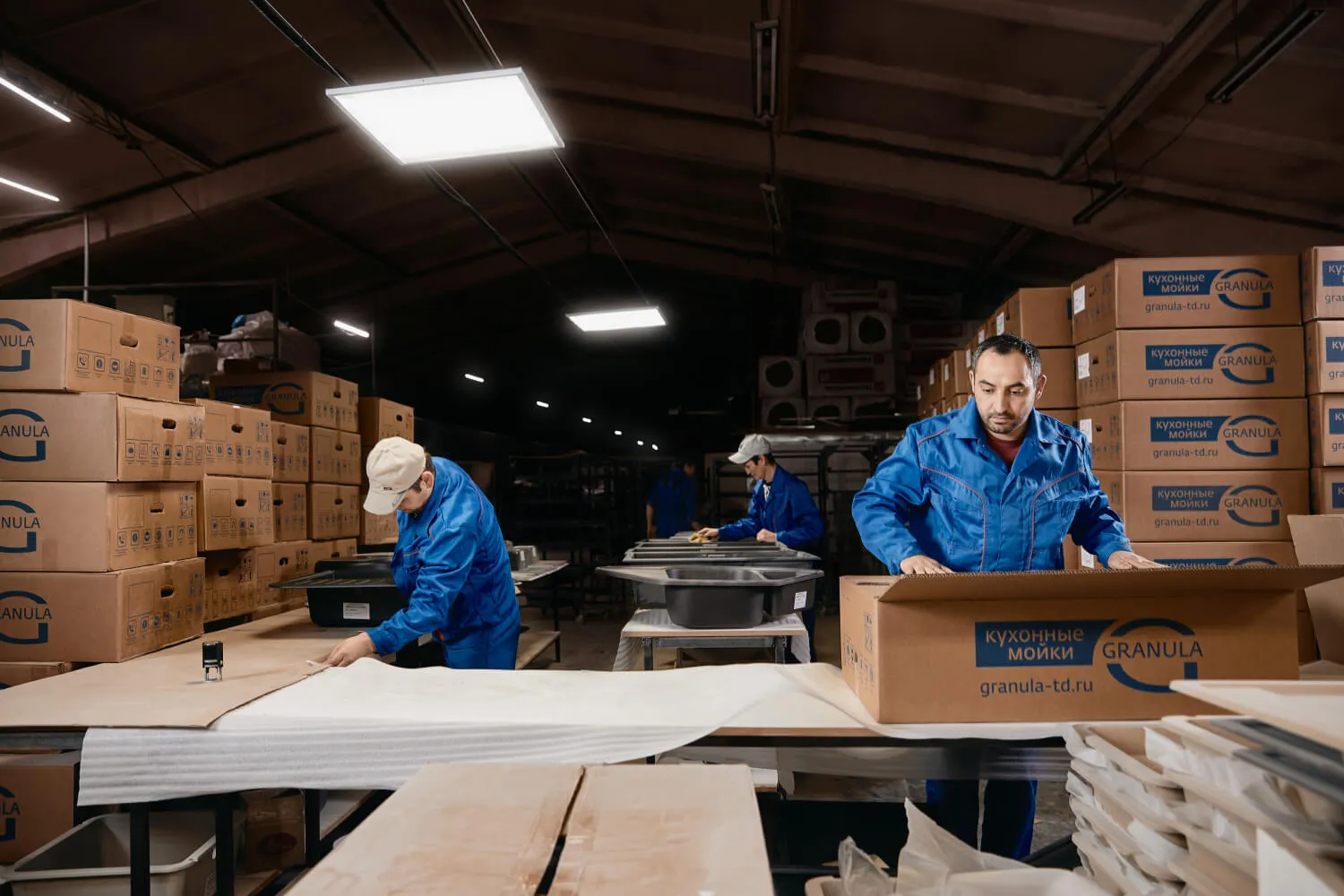 После полимеризации изделия отправляются в цех механической обработки. После фрезеровки кромки и сверления технологических отверстий, изделия поступают на участок комплектации и упаковки.